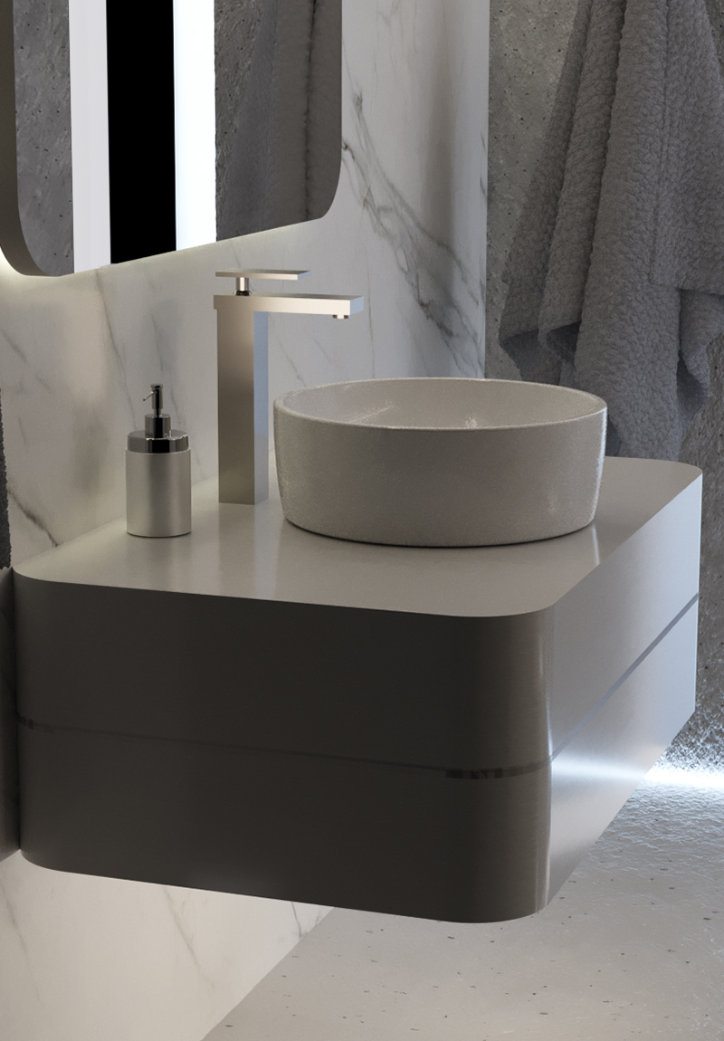 ●Acabados metálicos: Incorpora a tu lavabo grifos color plata y minimalistas en acero inoxidable cepillado que combinan resistencia y sofisticación.