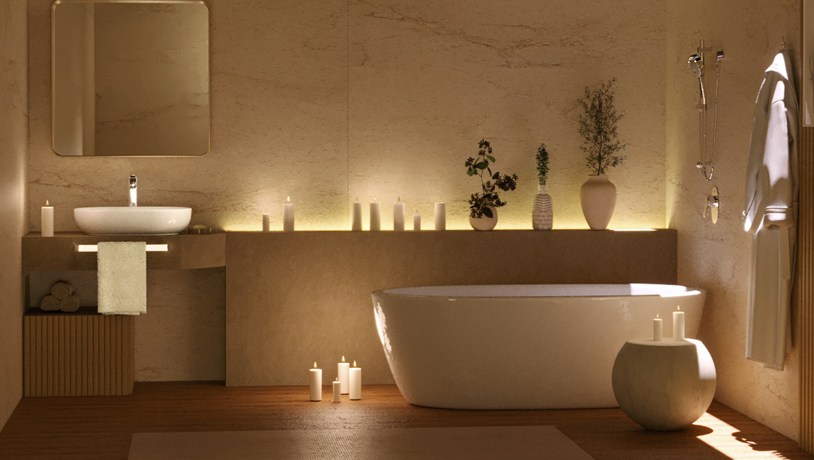 Ahora que tienes los elementos adecuados, toca crear un entorno ideal para disfrutar de un baño relajante en tu casa. Crea un espacio fresco, con un aspecto acogedor y que te haga sentir desconectado del mundo exterior: