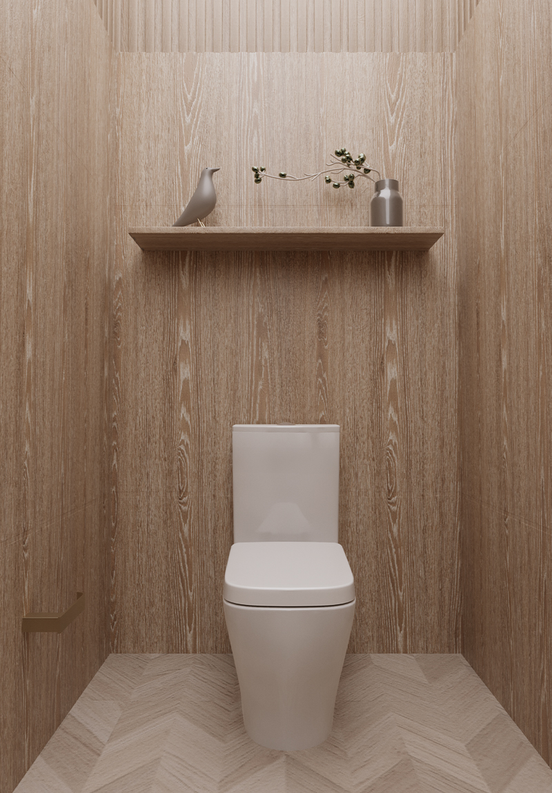 ●Materiales innovadores: el uso de materiales como el vidrio, el acero inoxidable y las superficies de resina permite crear un baño con un acabado pulido y contemporáneo.
