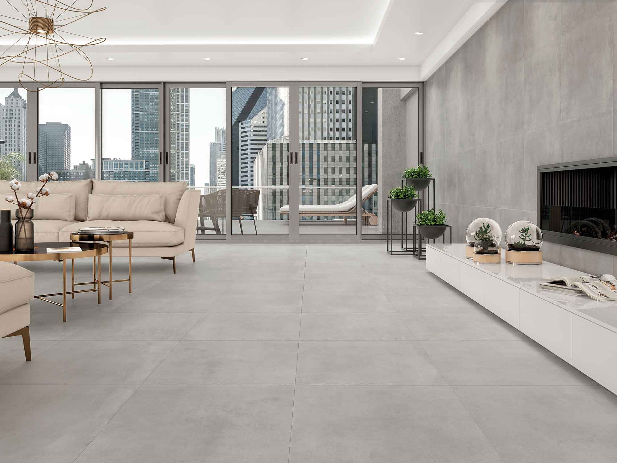 Efecto cemento que dota de elegancia en cualquier espacio. Aportan sensación de continuidad y, por lo tanto, amplitud. Este material conserva las tradicionales prestaciones de la cerámica: dureza, durabilidad y resistencia.